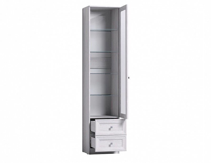Утонченный шкаф для посуды Paola 13 украсит Вашу гостиную в классическом стиле. Светлый декор с древесными нотками дополненстеклом с серым отливом, которое облегчает конструкцию модуля, добавляет ему воздушности и защищает вещи от влияния солнечных лучей и скопления пыли. Полки шкафа регулируются по высоте, что позволит Вам разместить различные вещи: посуду, книги, предметы декора и памятные вещицы. Два нижних ящика комплектуются шариковыми направляющими полного, плавного и бесшумного закрывания. Максимальная нагрузка на 1 ящик - 15 кг. Шкаф имеет универсальную сборку: Вы можете собрать модуль как на левую, так и на правую сторону. Особенности материалы ЛДСП 16 мм, задняя стенка ХДФО, профиль МДФ тонированное стекло 4 и 6 мм приятный древесный декор регулируемые по высоте полки максимальная нагрузка на одну полку с еврокромкой - 7 кг максимальная нагрузка на 1 ящик - 15 кг универсальная сборка металлические ручки крепление к стене за подвесы