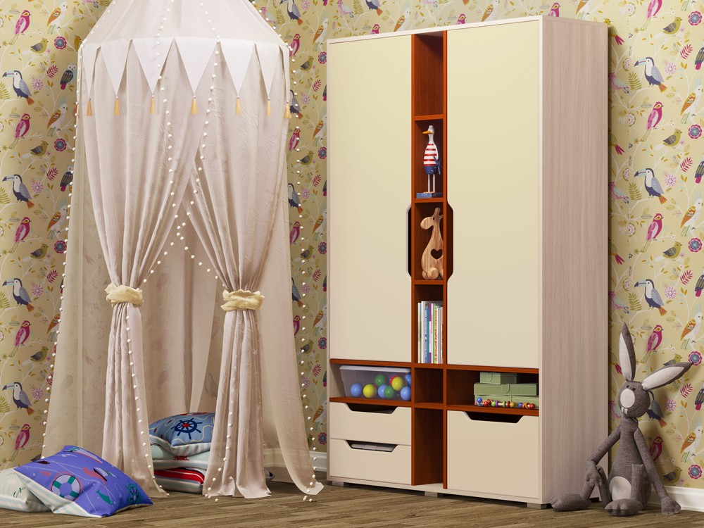 Компактный и практичный шкаф "Роберт". Вместительные отделения шкафа и большое количество ящиков помогут поддерживать порядок в комнате. Внутри шкаф оснащен выдвижной штангой для плечиков и огромным количеством полок, что позволит разместить большое количество одежды. Дизайн шкафа "Робинзон" необычен, что добавит изюминку в ваш интерьер.